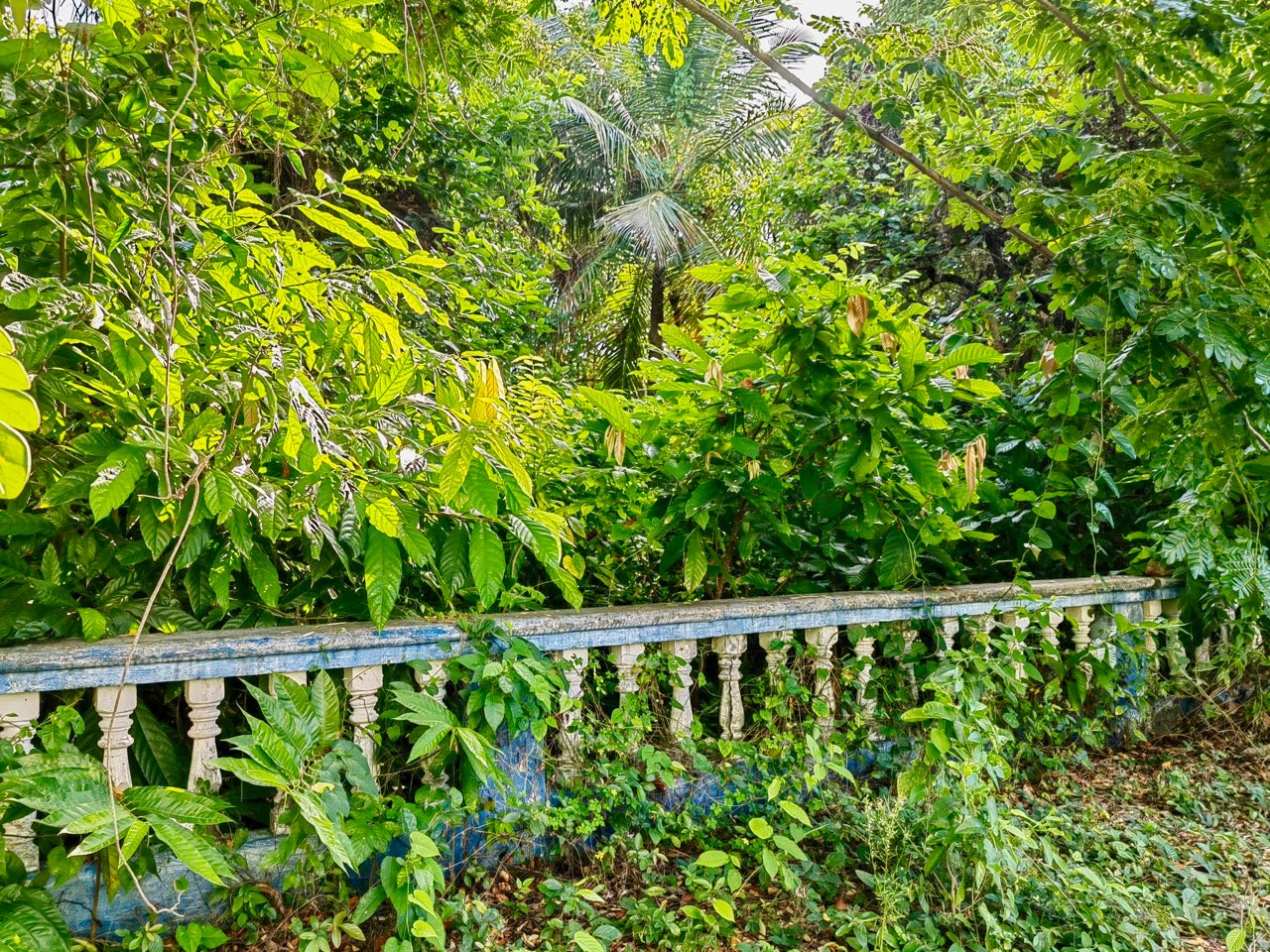 Actualmente, la propiedad alberga una pequeña cantidad de plantas: cacao, aguacate, naranjas, limones, fruta del pan, almendras, toronja, noni y guanábana.